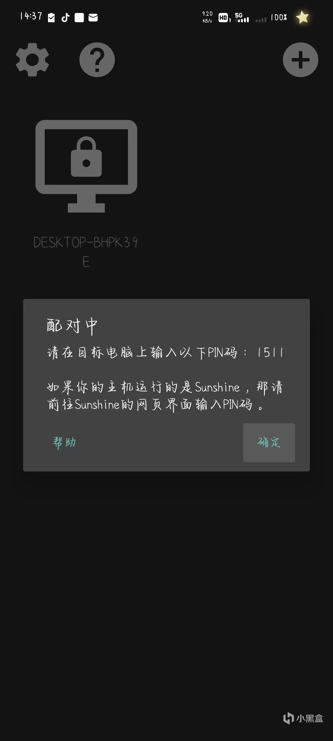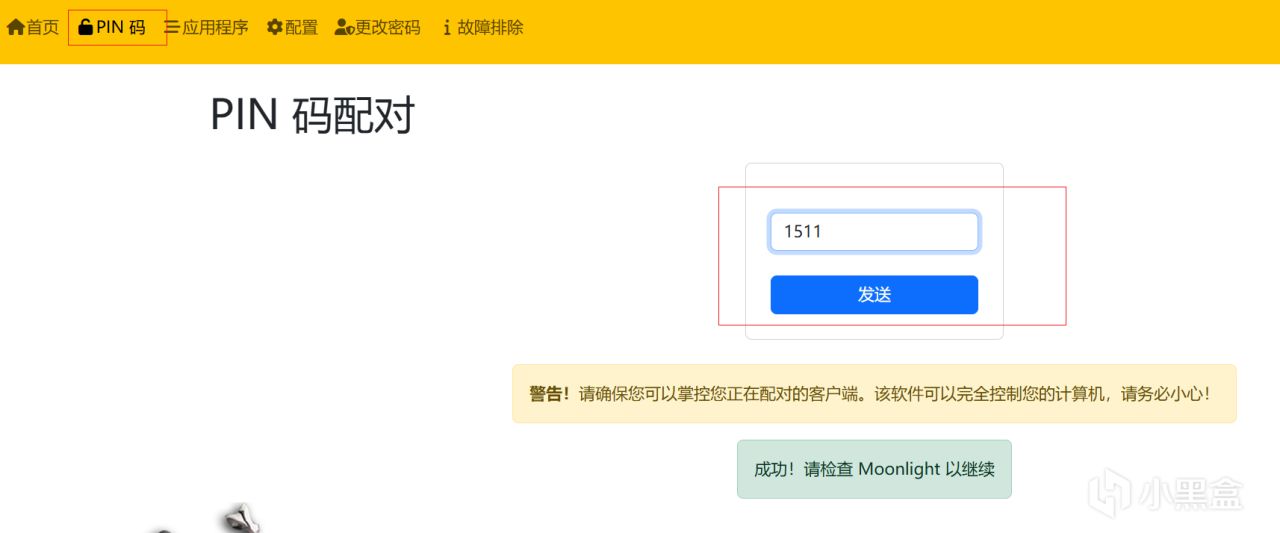 將手機端moonlight的PIN碼輸入sunshine中的PIN碼中