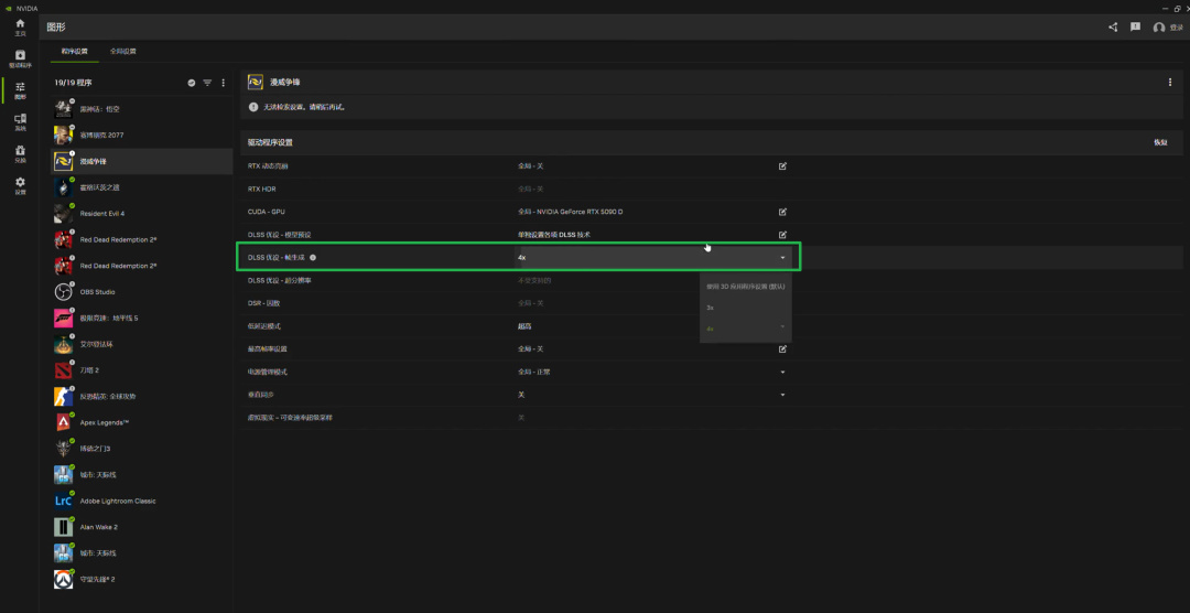 另外,這回英偉達考慮到有些遊戲還來不及適配 DLSS 4 ,所以他們直接在 NVIDIA APP 里加了一個 DLSS Override 功能——這個功能可以直接替換一部分遊戲裏內置的 DLSS 模塊。