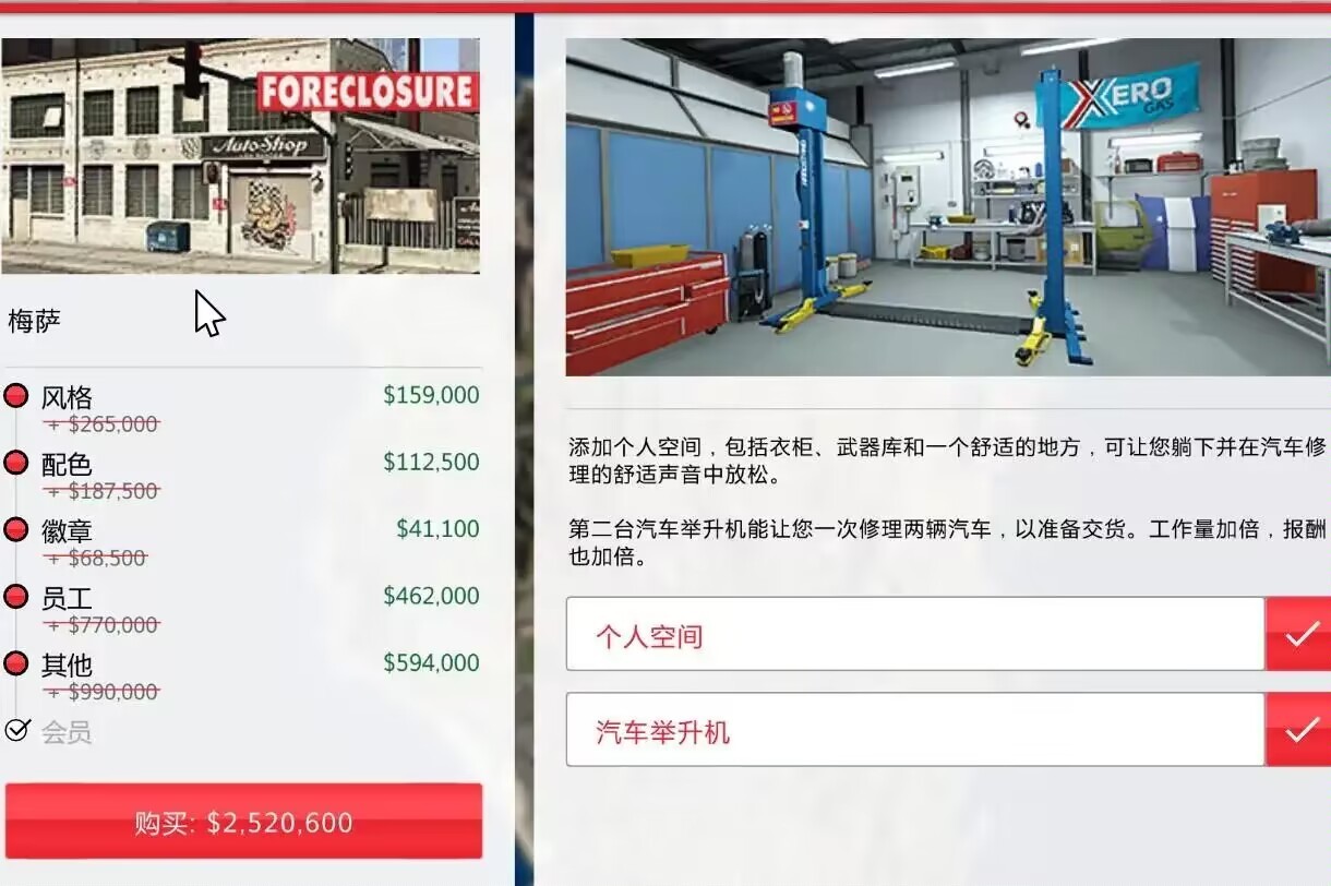 就盈利方面來說,忽略合約的加成,改裝鋪自身的收益率是很低的,它更像是一個優質的自定義停車空間、低價改裝車間。鑑於其任務需求不大,就不對位置作推薦,要在哪裏開設全看個人喜好。