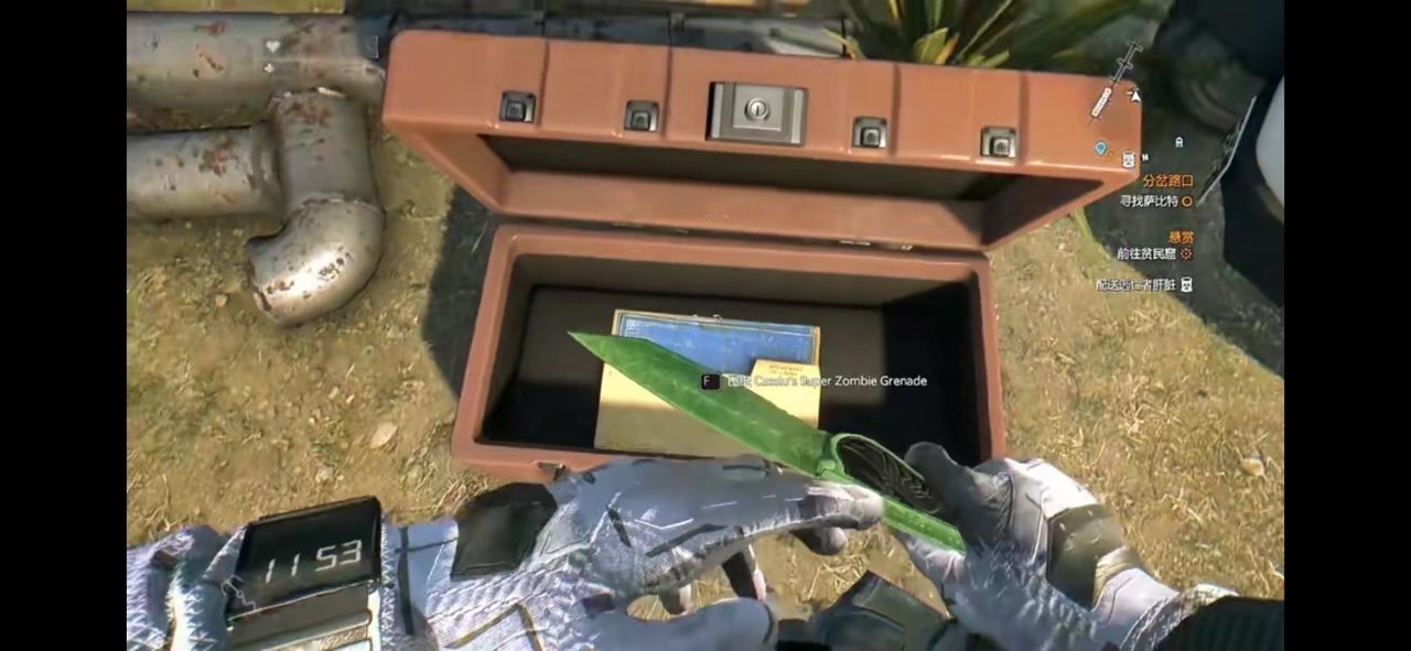 武器獲取:在完成托爾加與法坦的任務(哐當墜落)後,在他們遺留的桌子上可以拿到這個萬能鑰匙,然後呢在旁邊有一個箱子,打開它我們就可以拿到昇天手雷圖紙