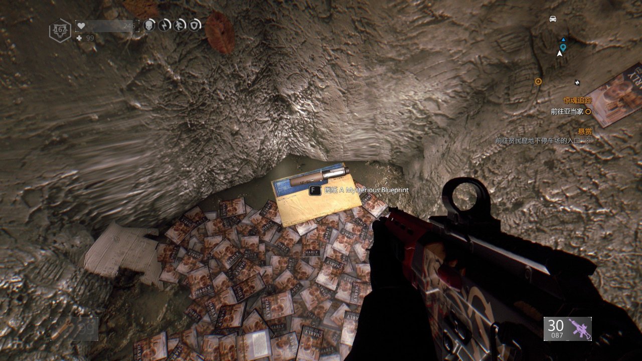 這裏呢我們要用槍把垃圾堆打掉,用霰彈槍打的話還是挺快的,不過這裏很容易把疫魔招來,把垃圾堆打穿後就會出現圖紙
