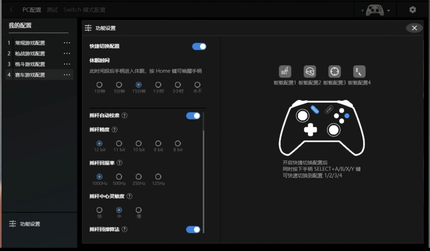 黑武士4可調節回報率和採樣率達到不同的手感,9bit+125hz類似xbox手感。同時扳機馬達和握把四馬達共振,藍牙模式還模擬了xbox原生震動。