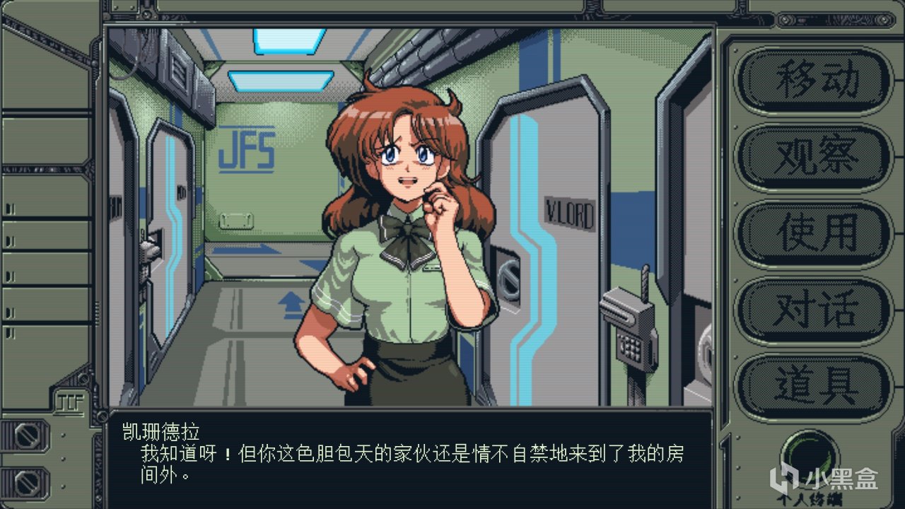 關於遊戲性其實也沒啥好聊的,本作對比一般的視覺冒險小說最大的特色就是復古(不知道爲啥,突然讓我想去玩玩YU-NO了),多了觀察,交互,對話,道具,這幾個功能。也就是說,遊戲有大量交互的文本,並且每當進入新的劇情階段後所有物品以及人物的交互都會翻新,做的是相當細節。