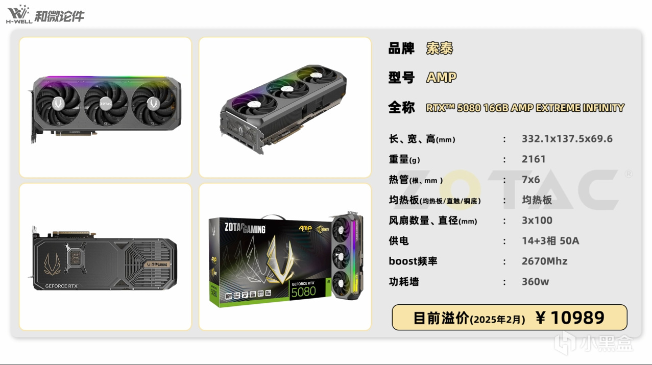 索泰,50系推出了AMP、天啓、SOLID、XGAMING四個定位的顯卡,先看定位自家旗艦的AMP,7根6mm熱管,均熱板,14+3相50安,目前溢價在11000左右