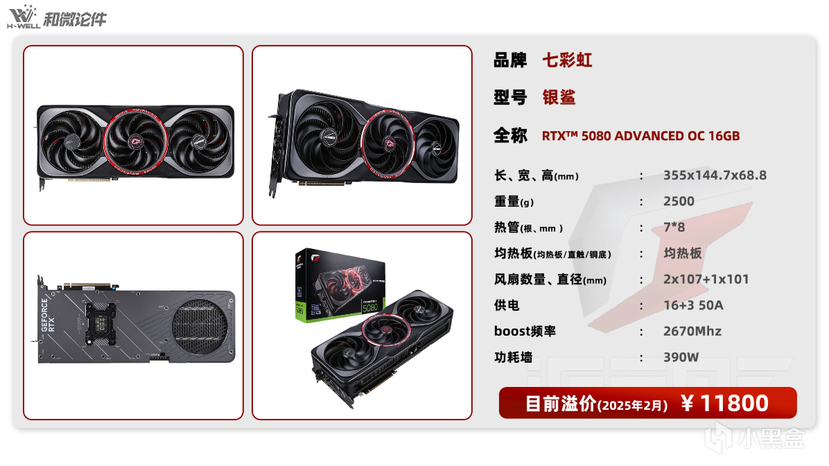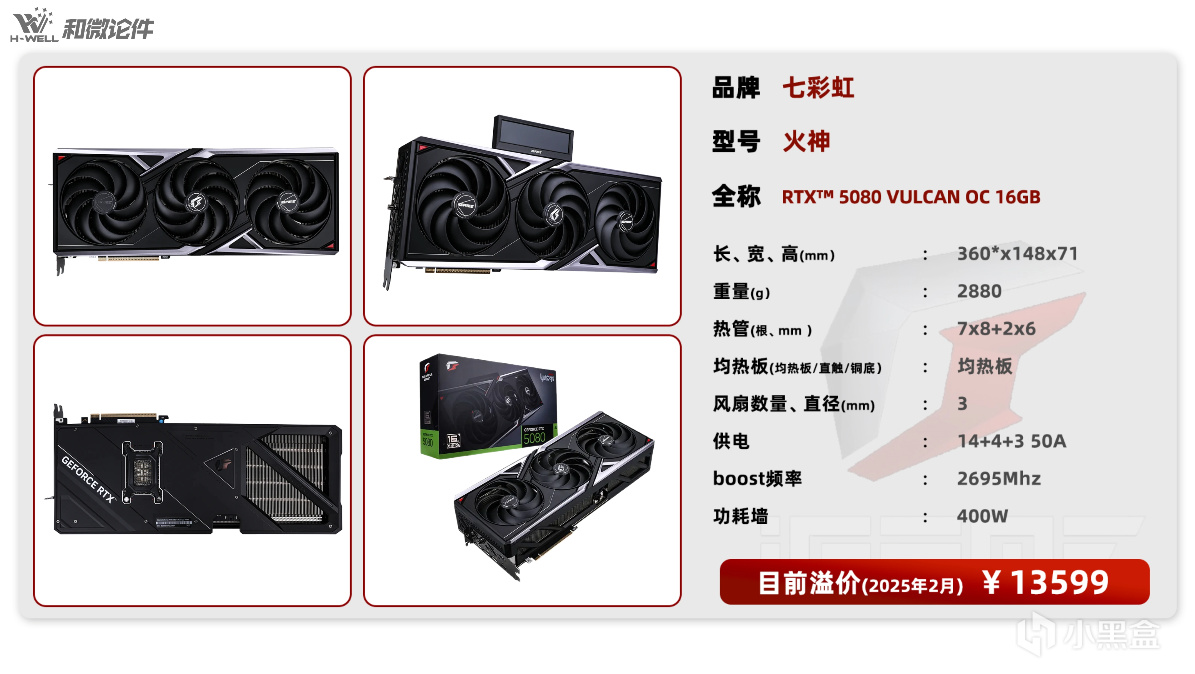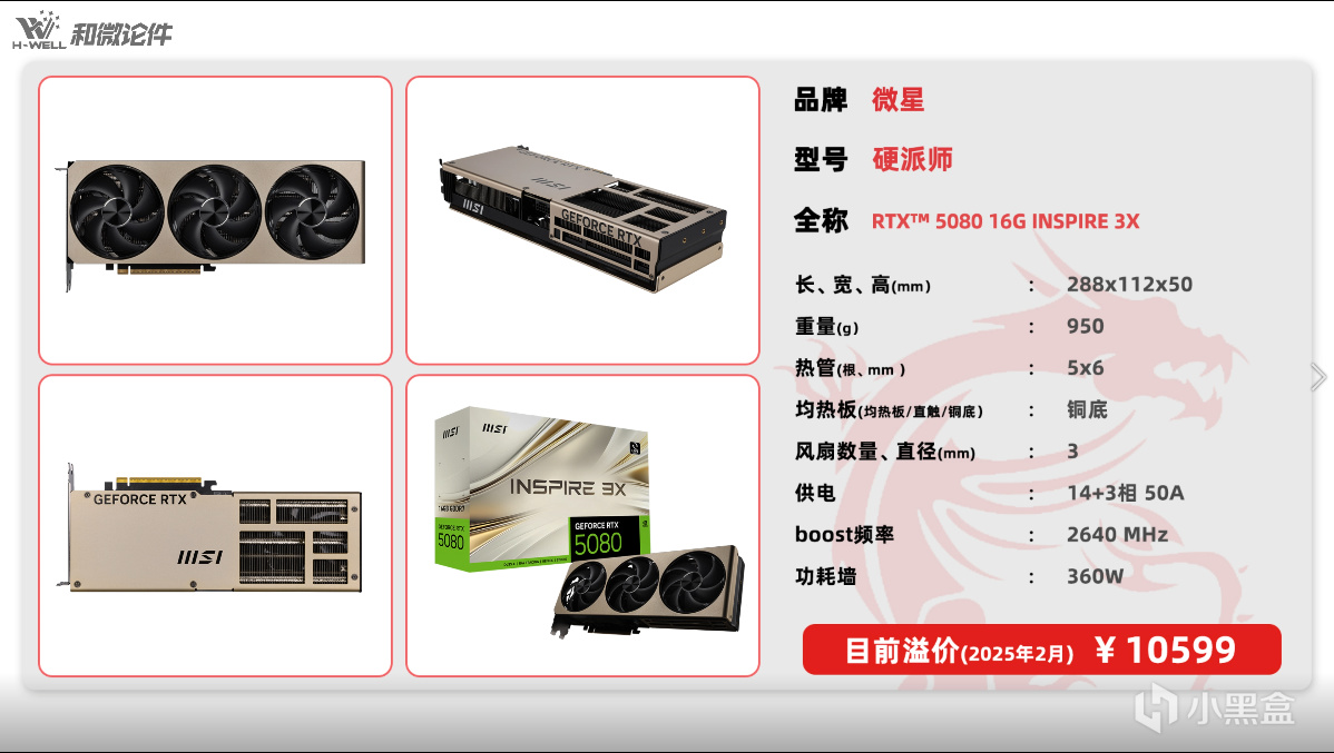 然後是硬派師,相比萬圖師再砍一根熱管,溢價在10599左右,比萬圖師還要貴一些,可能是主打顏值吧,黑金配合,也比較簡約,適配itx機箱。體積確實是5080中最小的一個。