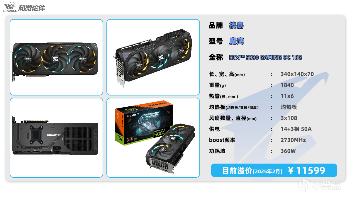 然後看技嘉,他們在50系推出了超級雕、魔鷹、雪鷹、獵鷹、風魔這幾款型號,5080呢,獵鷹是沒有參與進來