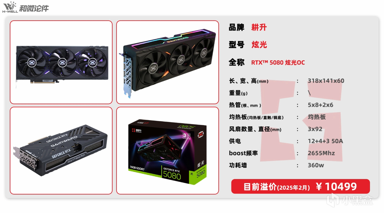 再看耕升, 他們在50系推出了炫光,追風以及踏雪,但是踏雪在5080還沒有推出