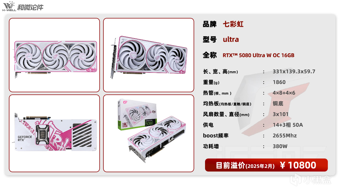 七彩虹的第三張顯卡是Ultra,4x8+4x6的熱管組合,砍掉了均熱板,供電爲基礎的14+3相50安,目前溢價在10800左右,整體評價是對得起中端定位。