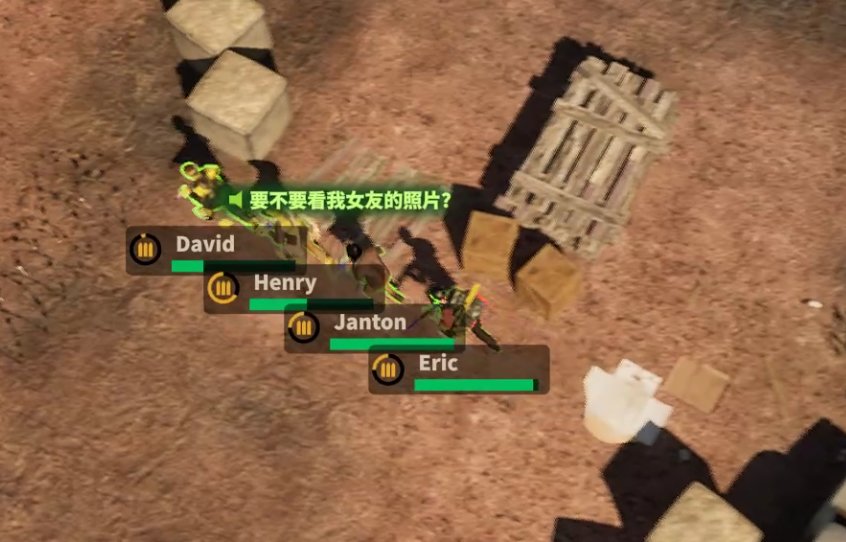 當然,這並不代表這遊戲的AI是個低能兒。至少他們不會走着走着卡牆上,丟的手榴彈也不會炸到隊友。而且爲了調和戰場的緊張氛圍,有位AI老哥還主動向隊友們提出要不要看他女朋友的照片,屬於是不把兄弟當外人了。