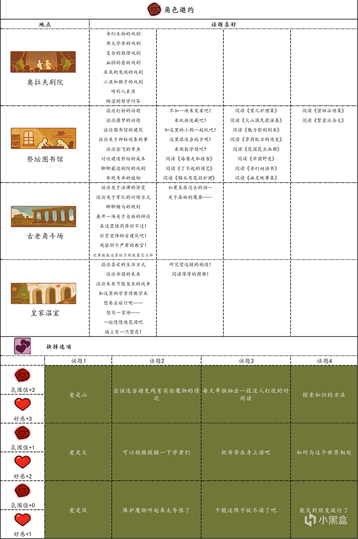 角色好感信息,包含了喜好物品、好感值、好感劇情等;
