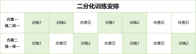指將身體肌羣分爲兩部分交替訓練的方式。