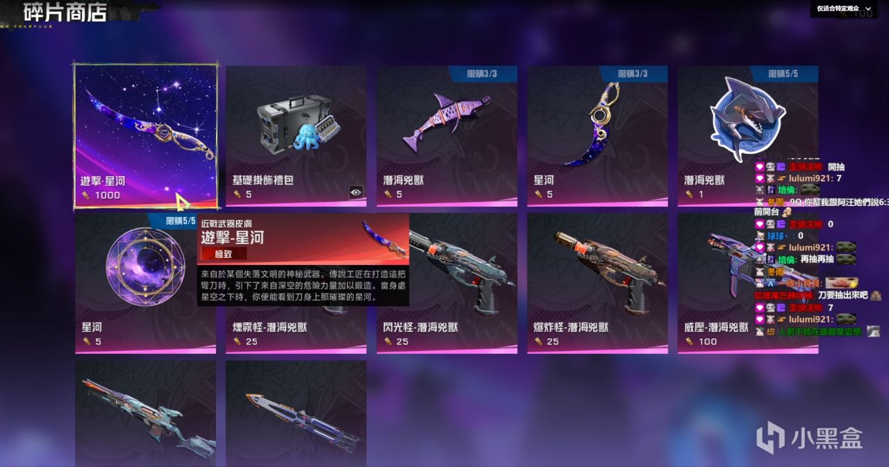 獎勵兌換界面,1000碎片兌換終極獎勵刀皮“星河”