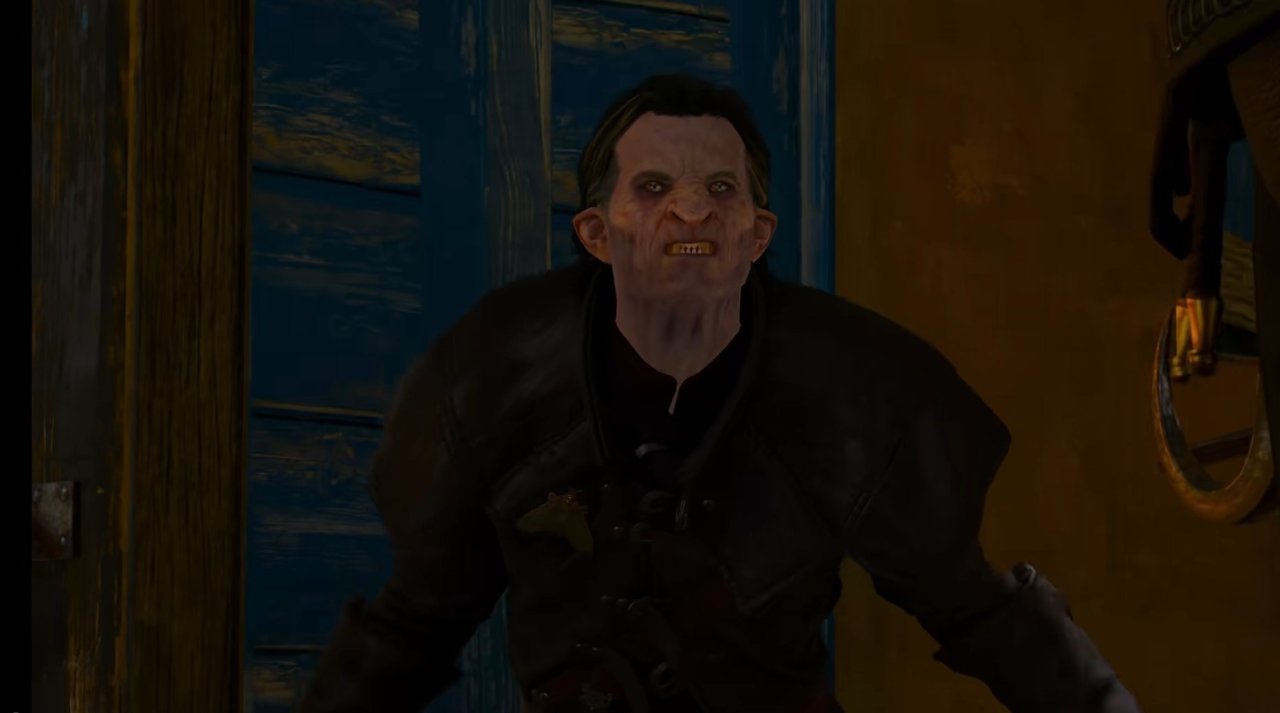 在倉庫中,傑洛特終於見到了他正在調查的怪物——狄拉夫,二者展開戰鬥。狄拉夫作爲高階吸血鬼,能化身血霧、隱形並快速恢復生命。在僵持的戰鬥中,傑洛特逐漸落入下風,黑影隱身以後偷襲傑洛特,就在利爪即將刺穿傑洛特的時候,同樣是吸血鬼的身影閃現——雷吉斯,現身擋下了致命一擊,救下傑洛特,狄拉夫溜走。雷吉斯與傑洛特屬於舊友,他曾是與傑洛特同行的人類,但意外死亡。他透露狄拉夫曾救過被燒成灰燼的自己。
