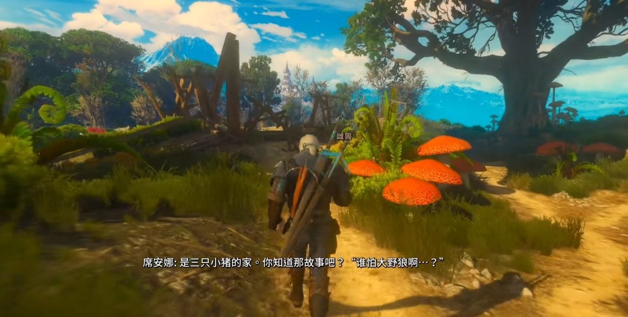 在傑洛特和席安娜尋找魔豆時,遇到了三隻小豬的家,大野狼已經破壞了草屋和木屋(有意思的是這個野狼和狼外婆是同一只)而三隻小豬就將自己關在了磚房子裏。