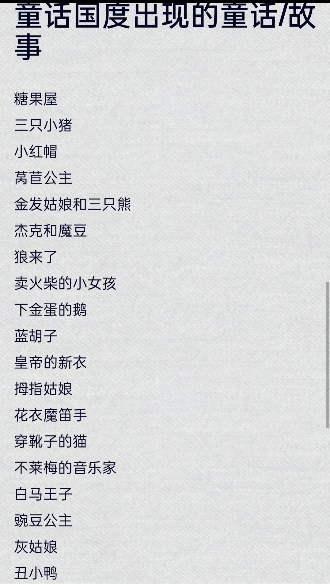 上述關於童話國度的講述實際上並不全,如果要講完大家估計也得視覺疲勞了,我這裏從wiki貼一個名單大家參考一下。