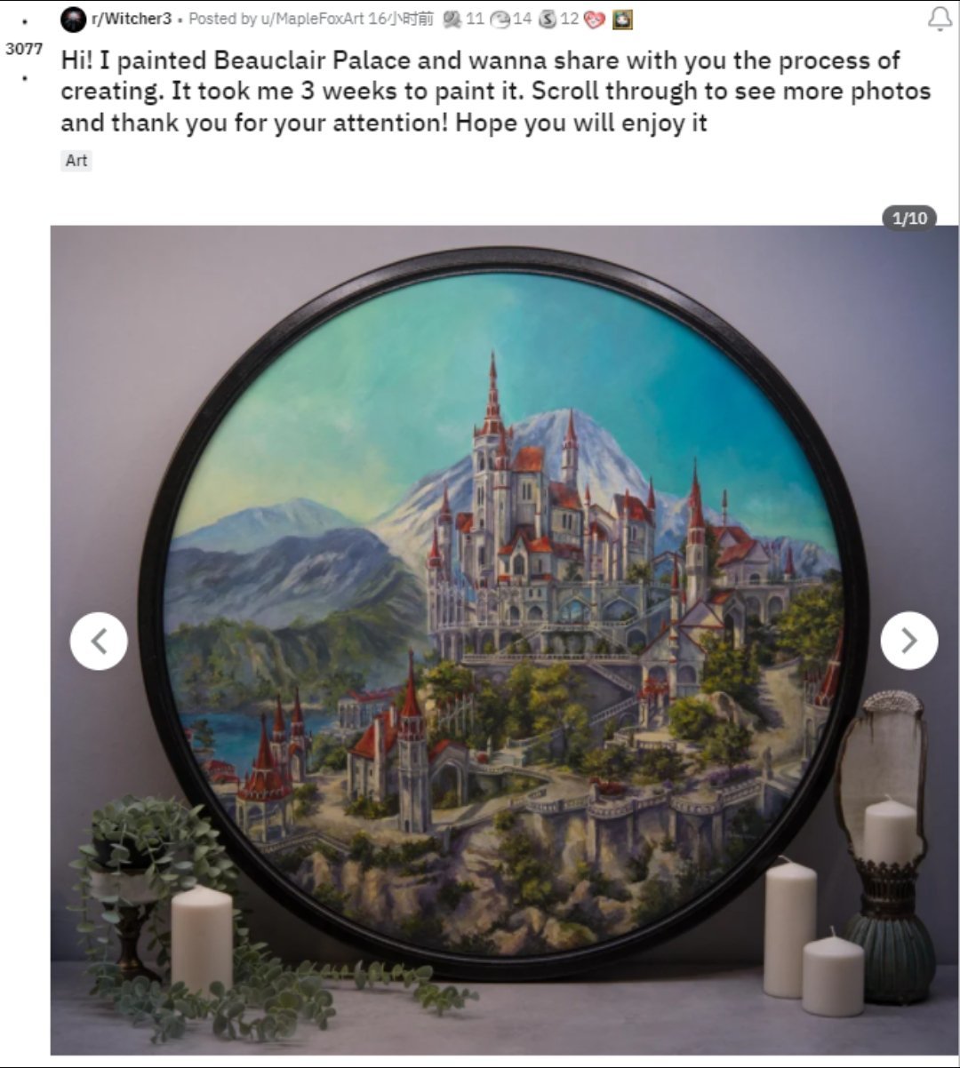 談及建築風格,在引入鮑克蘭宮殿之前,先給大家看看2022年1月29日玩家MapleFoxArt發佈的一張她花三週時間繪製的鮑克蘭宮殿畫作。