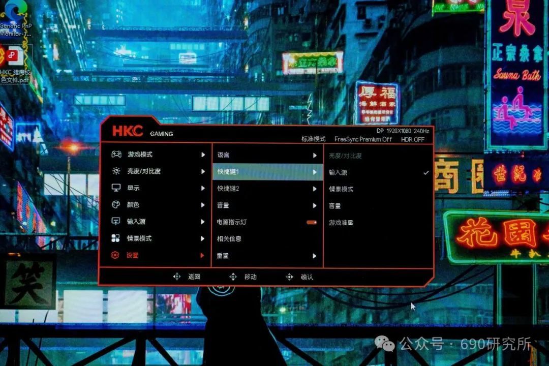 在OSD菜單中,HKC G24H3S經典版還貼心的設置了快捷按鍵,遊戲玩家可以設定快捷鍵,快速的在不同模式之間進行切換。
