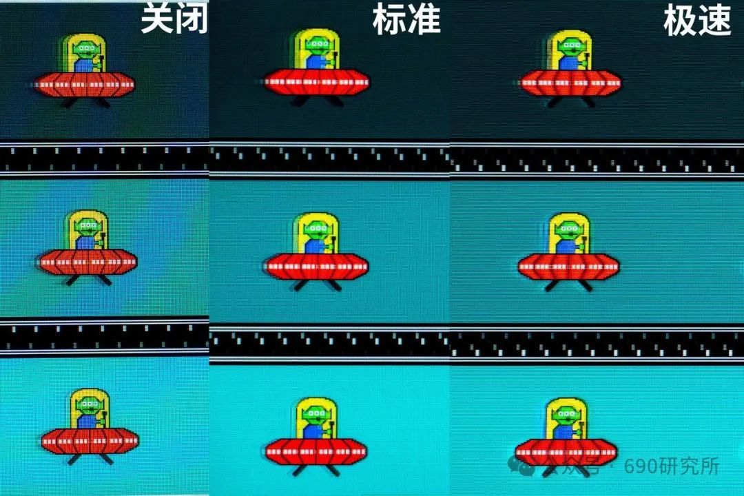 可以看到即使在極速檔位下,畫面也沒有出現影響使用的過沖表現。(看UFO中間的虛線以及UFO,在極速檔位下虛線也沒有連成一條線,UFO也清晰可見)