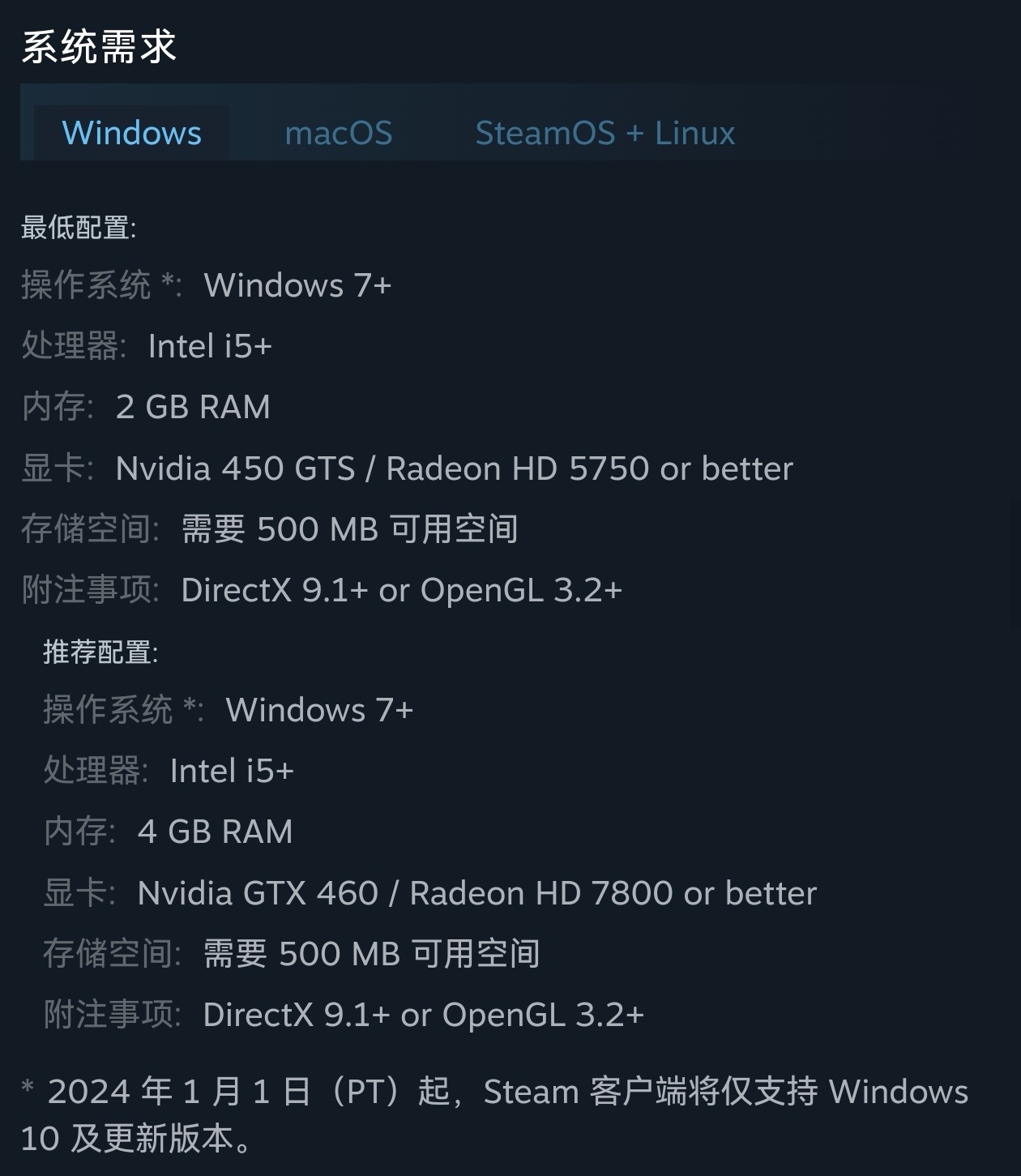 遊戲配置要求: