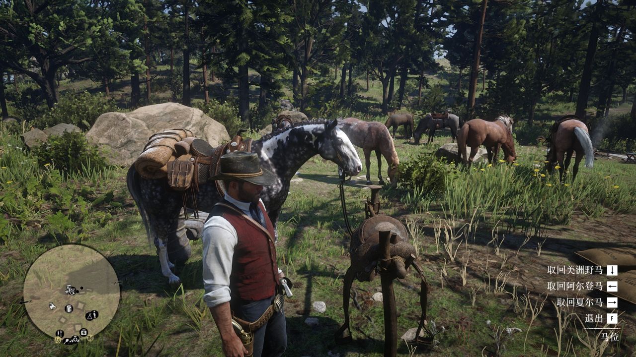 2.走到營地馬位旁邊,按H取回馬廄裏的一匹馬.我以狐步爲例
