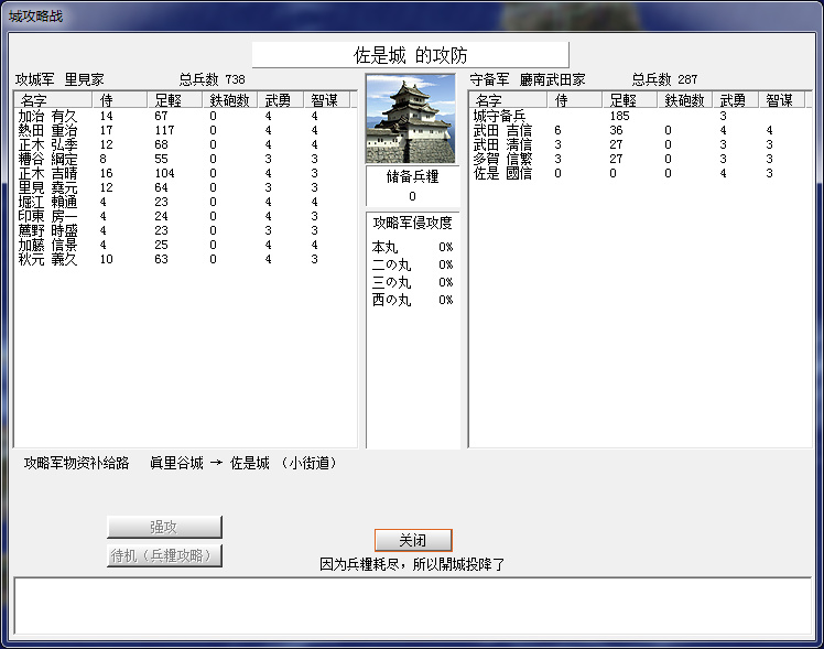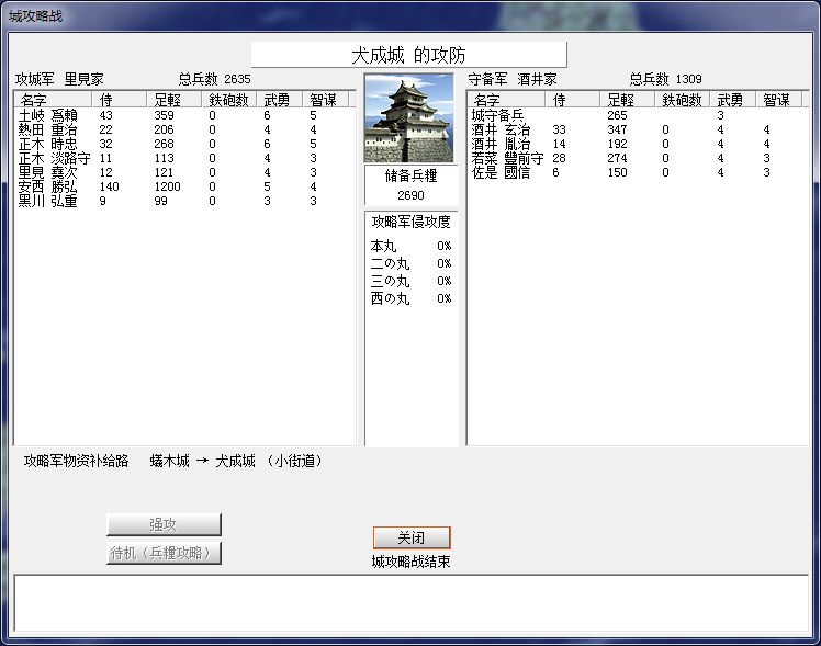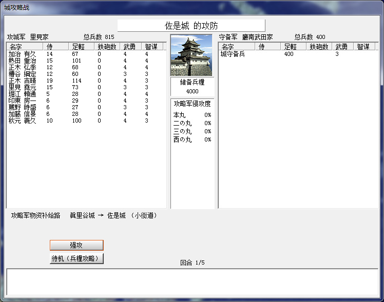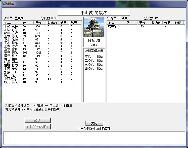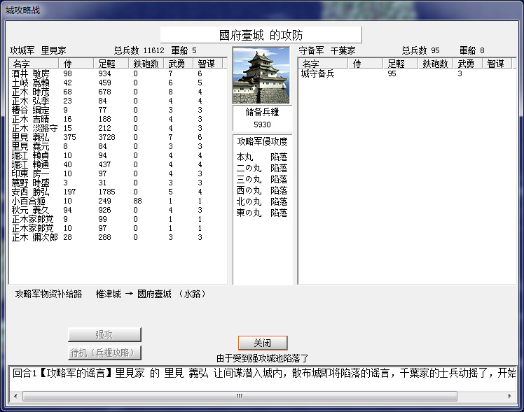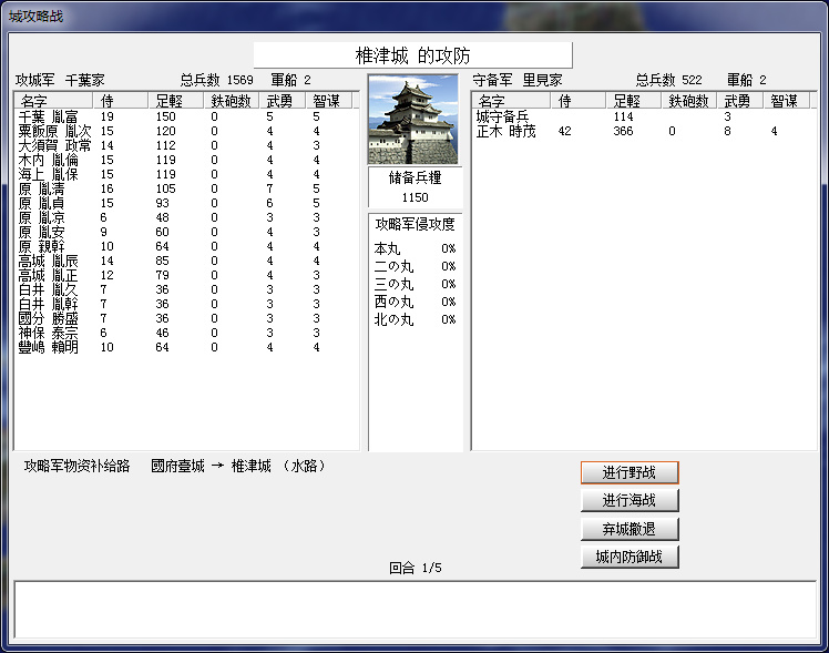 千葉家果然從國府臺城跨海來攻,還好只來了不到1600,下個月可以解圍。