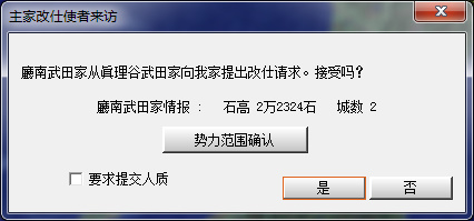 廳南家再次要求從屬,拒絕。裏見家要擴充直轄領地。