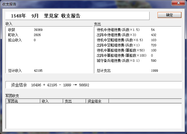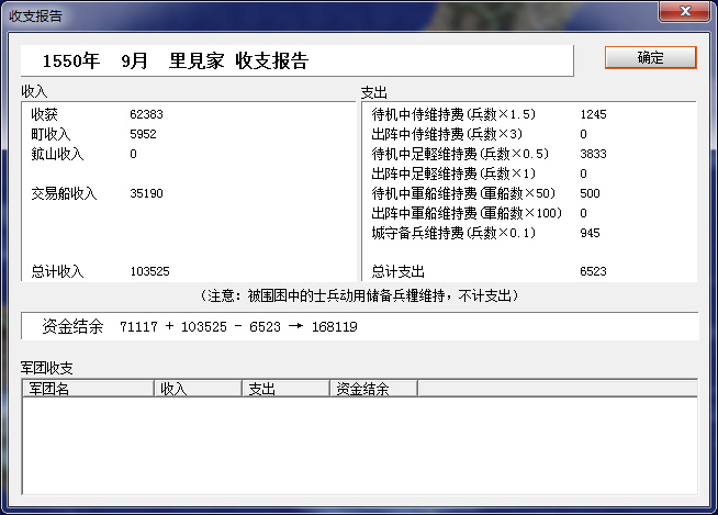 開局全國町、石高、礦山加滿,收入還不錯。