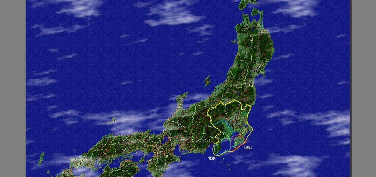 以上幾局,開局周邊都沒有大勢力壓制,可以相對從容的壯大自己,面對後期boss北條(尤其是1553年甲相駿同盟後,沒有後顧之憂的北條會開始發力),所以這次選擇北條邊上的裏見家試試,看看能否壓制北條,制霸關東。