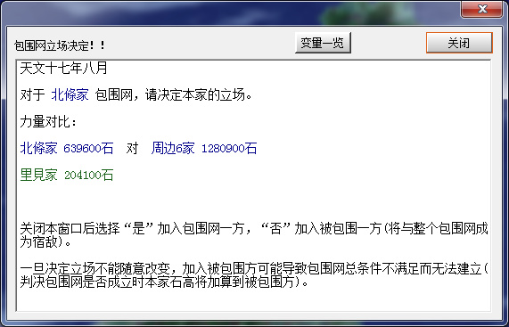 既然加入或是不加入,一開始都不會打北條,那麼爲了避免發展過程中被北條騷擾導致雙線作戰,那就不加入包圍網,而選擇加入北條一起被包圍吧。