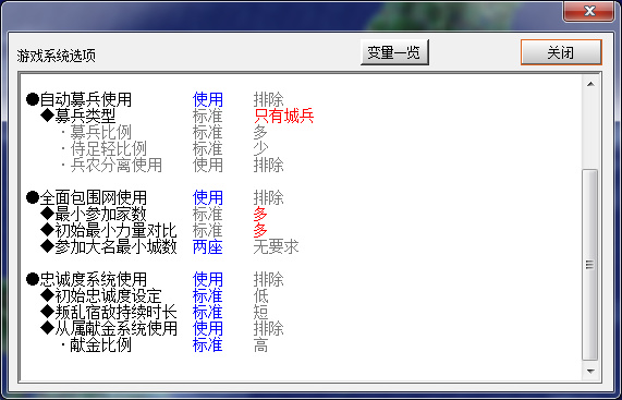 另外關閉了譜代分封和配置與力功能,這些功能想法很好,但實際上bug不少,並不完善。