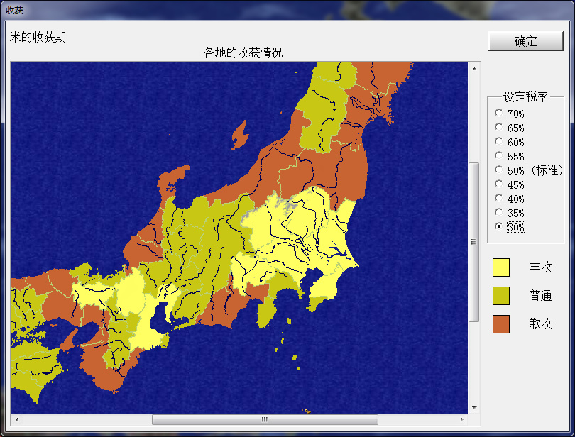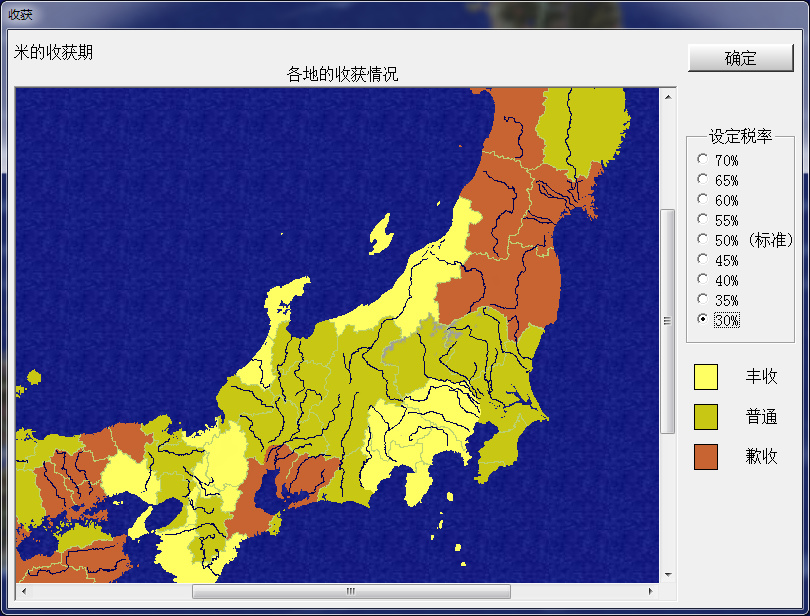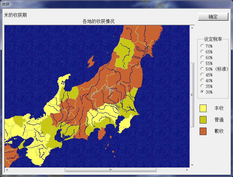 裏見家目前不缺錢,不管是豐收、普通還是歉收,開局都保持30%的稅,爲了提高民忠多徵兵。