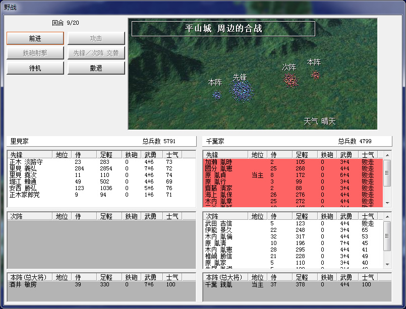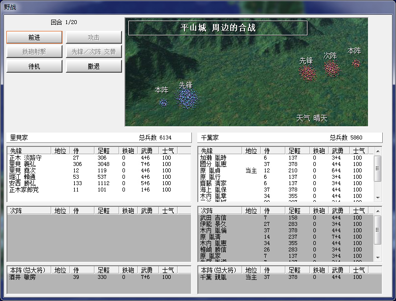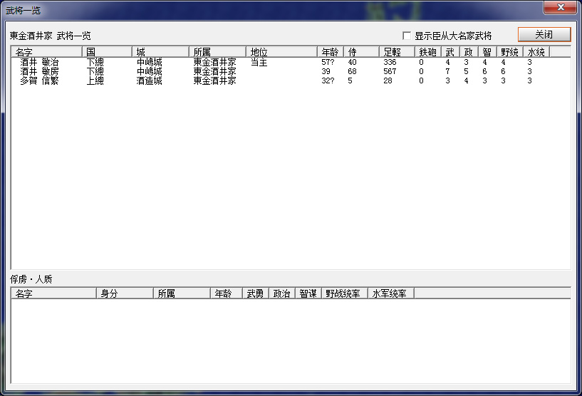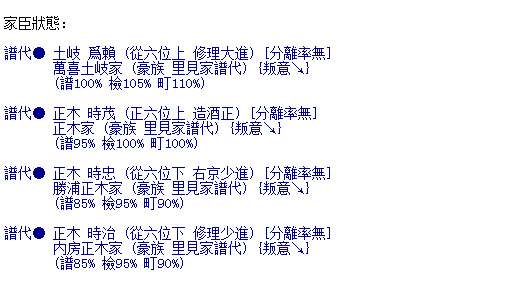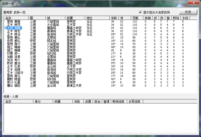 最後看看武將情況,堪稱名將的僅裏見義堯、正木時茂二人,裏見義弘也算一員猛將,各譜代也是當主較強,無法守爲客將,其餘政治、智謀、統帥人才相當缺乏,只能慢慢收集了。