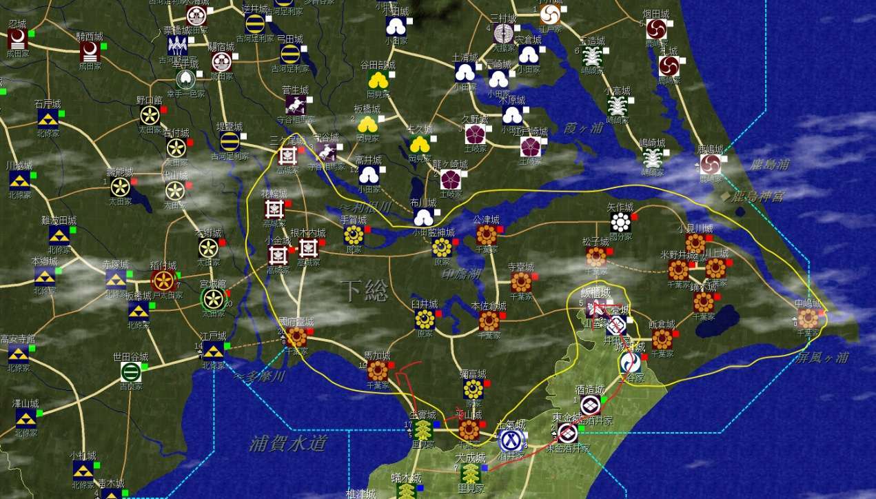 下總北部延伸至武藏與常陸之間,拿下南部後看情況進入北部還是進入武藏或常陸。