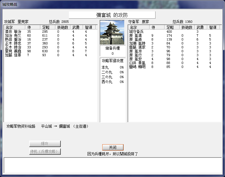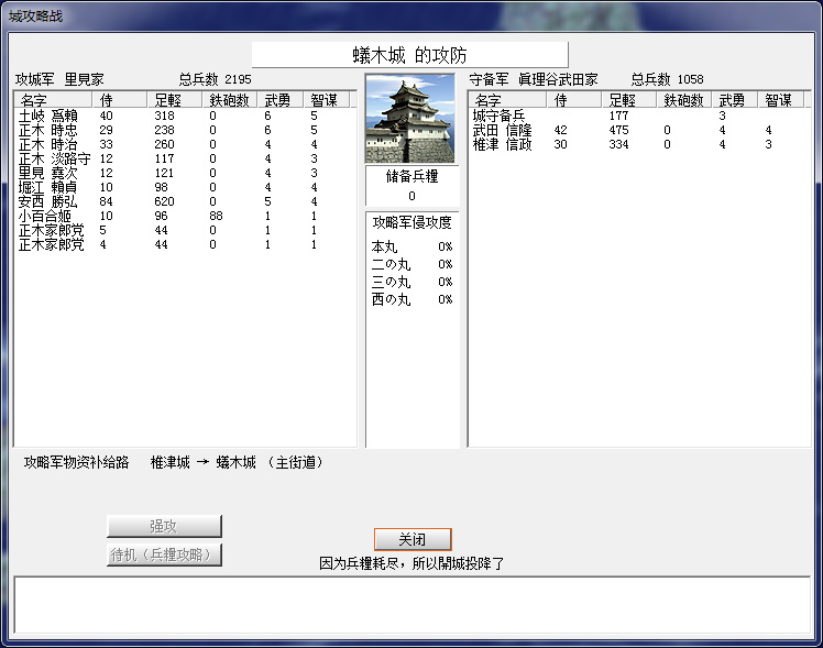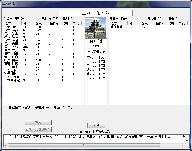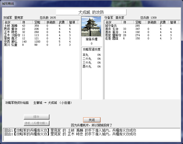 先力攻,再火攻,但是感覺火攻略虧,因爲人燒得比糧食多,圍城幹殺變慢了。。