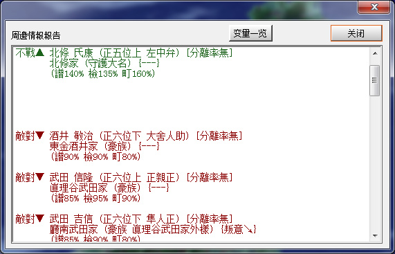周邊僅和北條家不戰同盟,其餘均敵對。