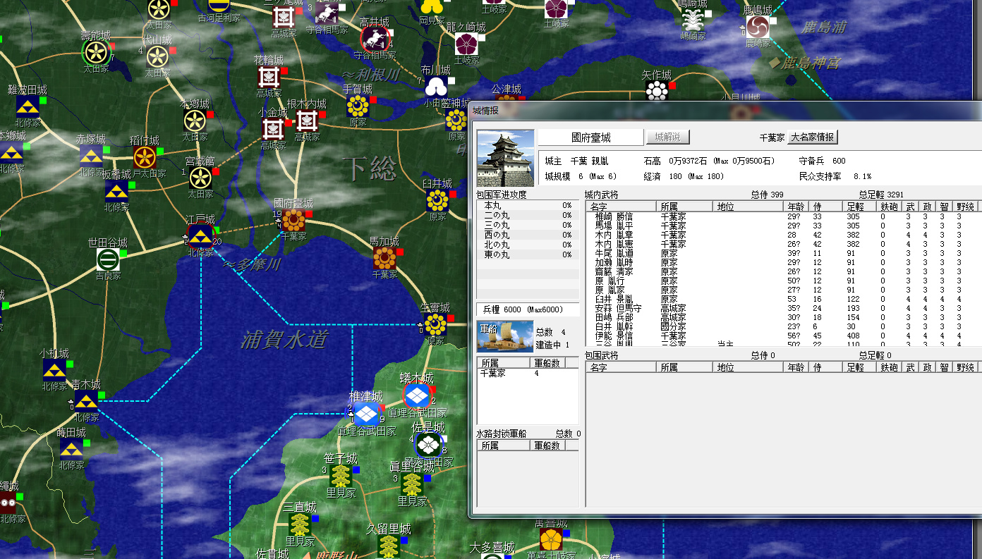 三處圍城繼續,此時千葉家1500人圍困江戶城的同時,國府臺城的部隊也接近3700人,實力很強。