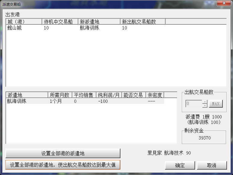 有錢後馬上造滿貿易船,先航海訓練攢訓練度,然後才能去其他港口掙錢。
