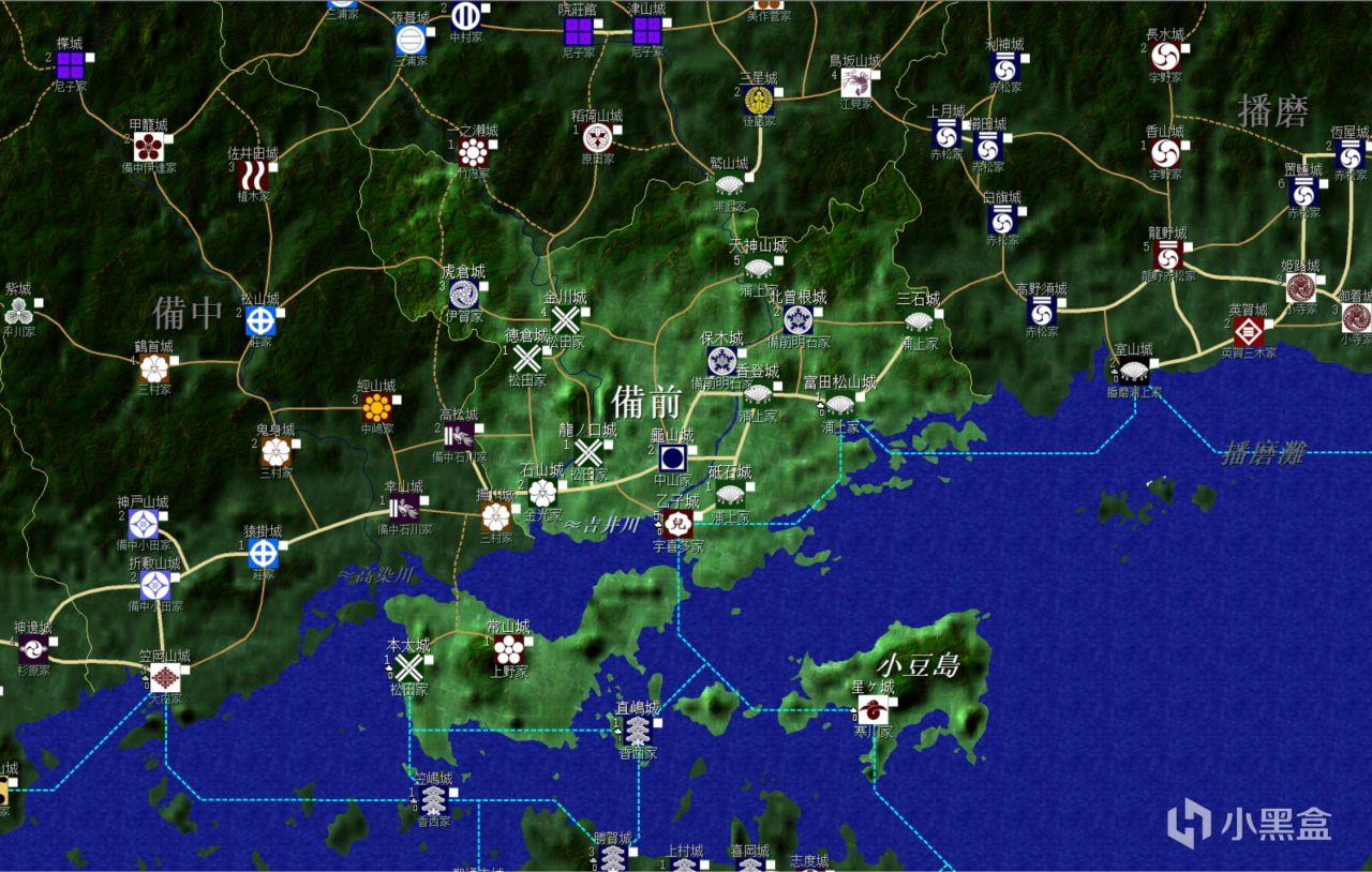4,宇喜多家:宇喜多家開局只有一個城,但是武將不錯,直家的智謀9攻城時觸發計謀幾率高,有時候可以無血開城,野戰時也能夠奇襲,手下花房正信等人也還過得去。開局獨立,反覆主動從屬然後叛主弒主,可以很快統一備前和播磨,並且備前和播磨的兩個貿易港基本上開局兩年內可以拿到。前期周邊的大勢力只有尼子家可能碰到,稍微注意就行。本局拿下備前、播磨、美作後與三好家對立,之後拿下了三好家在四國、淡路、畿內的所有地盤,從丹波、和泉兩路上洛,之後向北搞定朝倉,向東南搞定織田,完成畿內壓制。