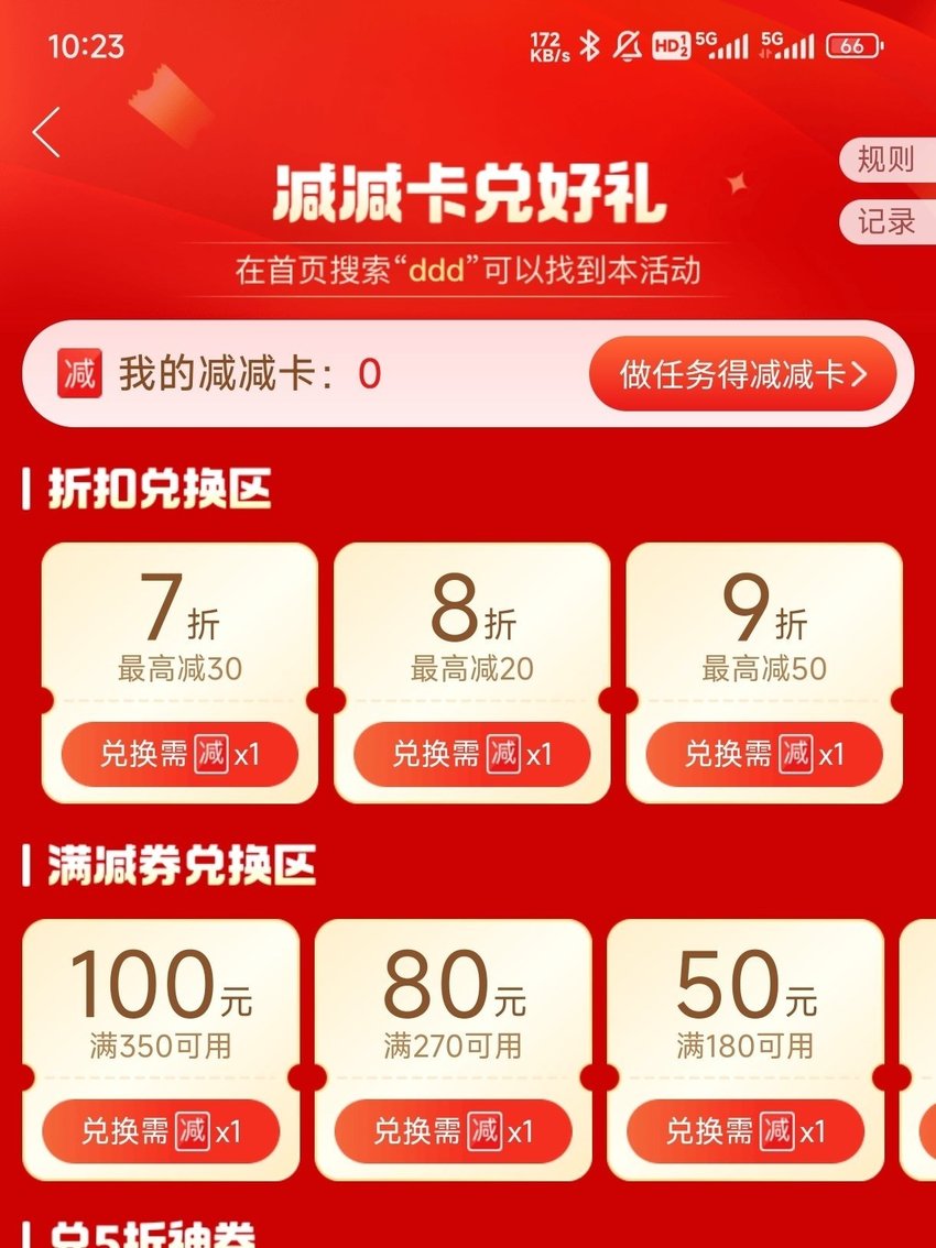 7.首頁搜索ddd,可以獲取一個減卡活動,同樣能獲取到大額卷。