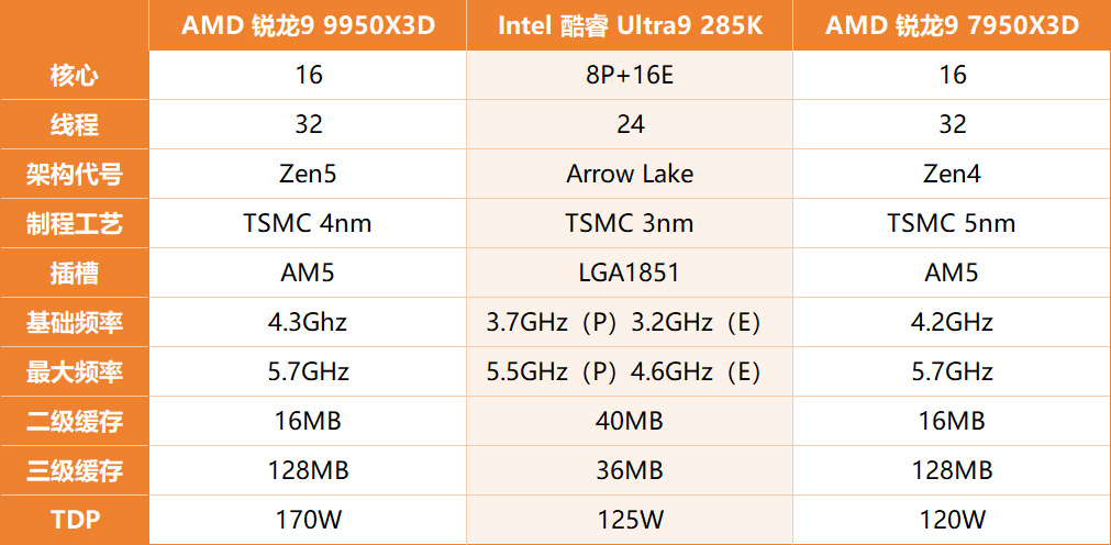 從上面的遊戲測試上也表現出色領先285k 20%左右的性能,對比7950X3D也有10%的漲幅。在生產力上憑藉ZEN5架構的16顆核心會有更快的剪輯/渲染導出速度,對於時間就是金錢的自媒體行業來說可太關鍵了。同時AMD的戰未來特性,也讓AM5接口繼續支持到2027年,甚至ZEN6架構處理器還是AM5,節約了3000+的主板錢。