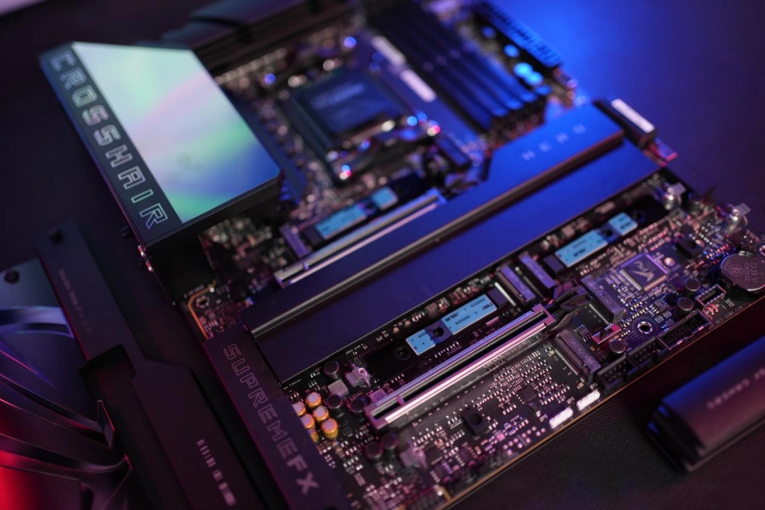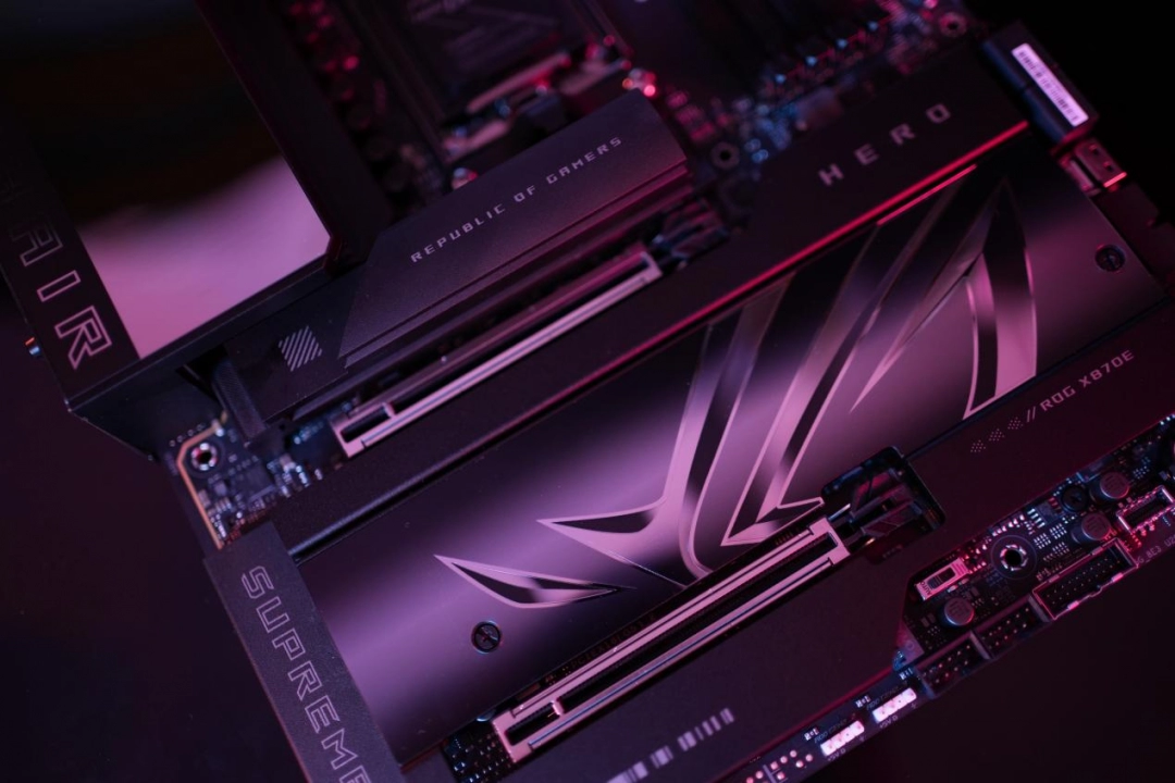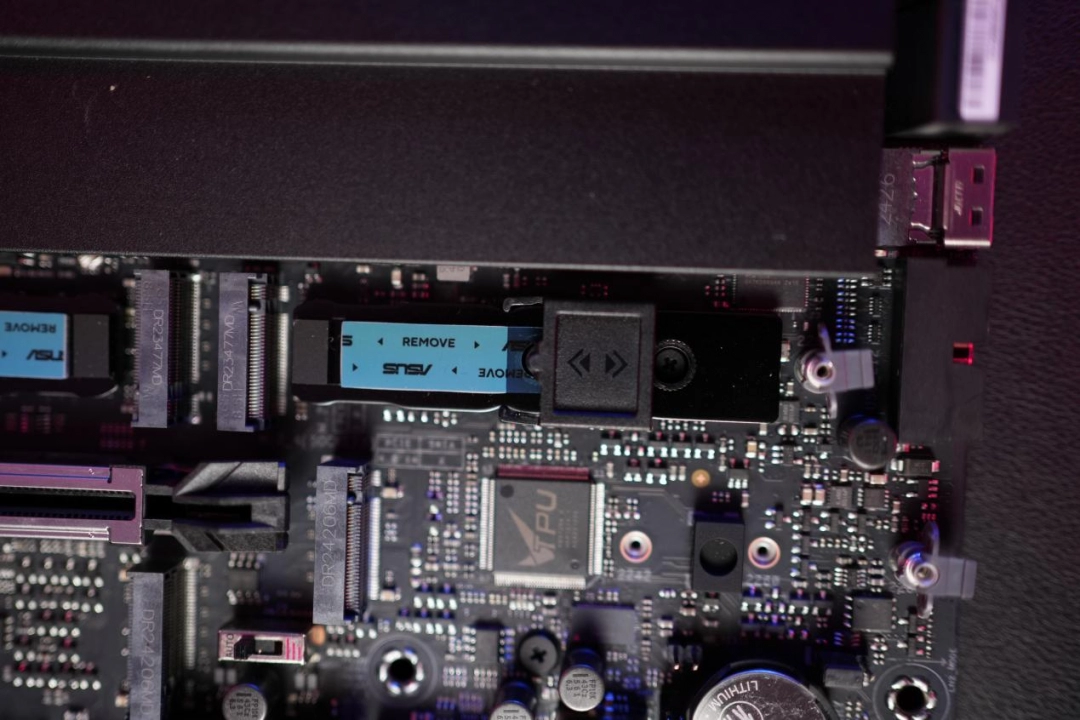 在卸下所有散熱裝甲後,ROG CROSSHAIR X870E HERO板載5個M.2插槽,其中3個支持PCIe 5.0,而剩下兩個則是PCIe 4.0接口。