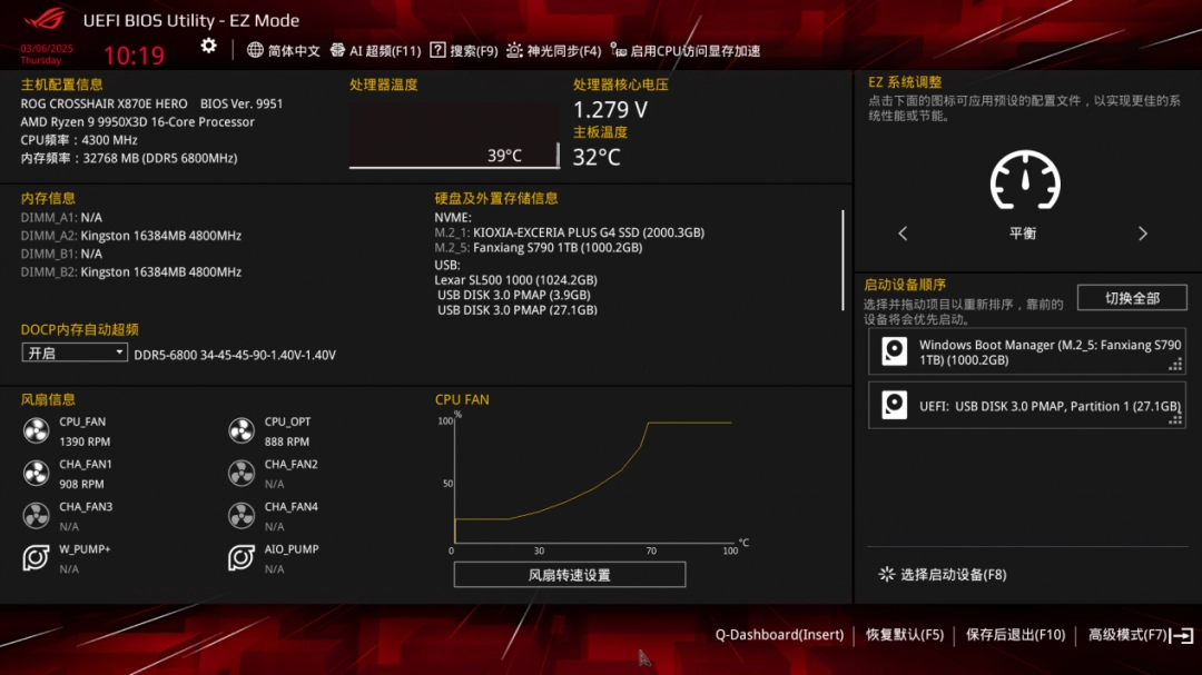 電源方面考慮到RTX 5090D誇張的600+W功耗使用了ROG STRIX白金雷鷹1200W白金牌全模組電源。採用創新的氮化鎵(GaN)晶體管,體積小、發熱低、轉化率高,具有更好的能源效率。智能電壓穩定器可提升電壓穩定性高達45%,16-pin PCIe線,可將高達600W的功率輸送到PCIe Gen 5.0顯卡保證顯卡供電穩定。此外,符合ATX 3.1規範,獲得80 PLUS白金牌認證。