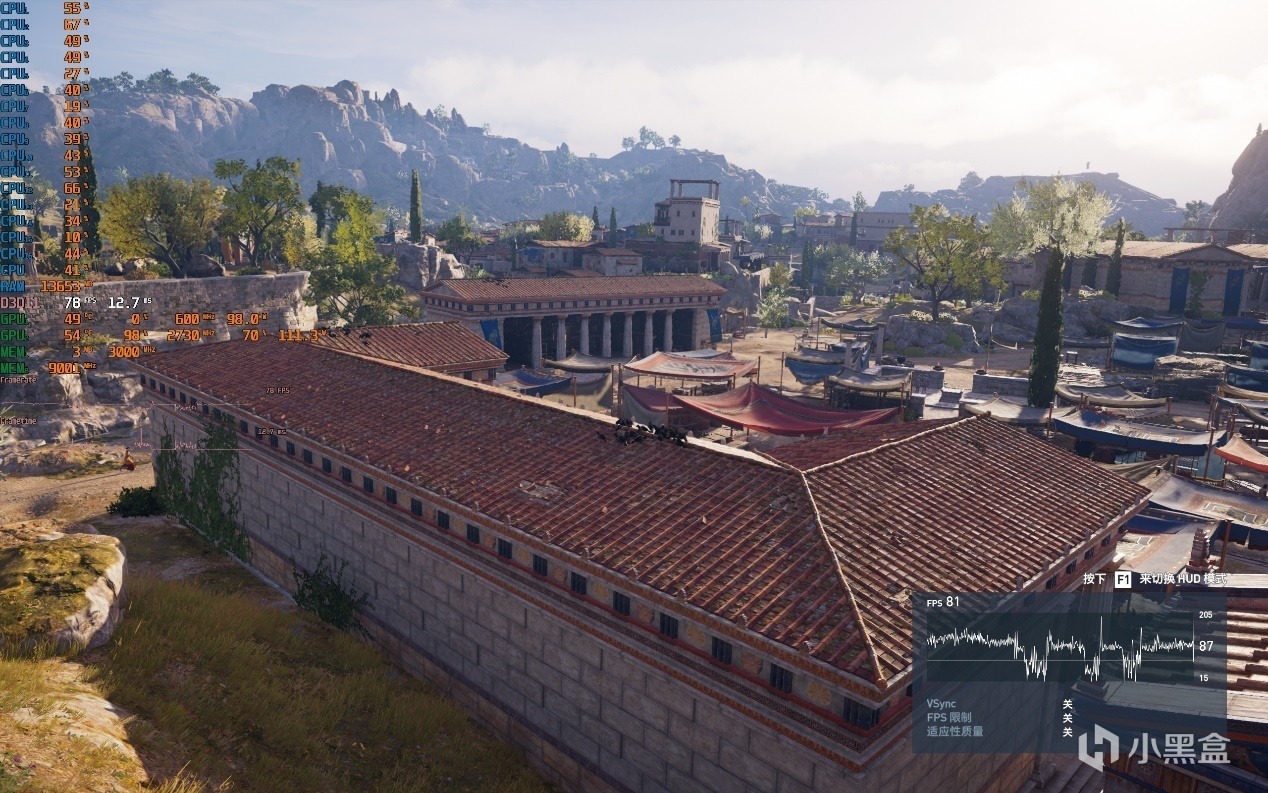 ▼室外的大場景,遊戲幀數降到78幀左右,也還行。顯卡的核心頻率在2730MHz,功耗111W左右。