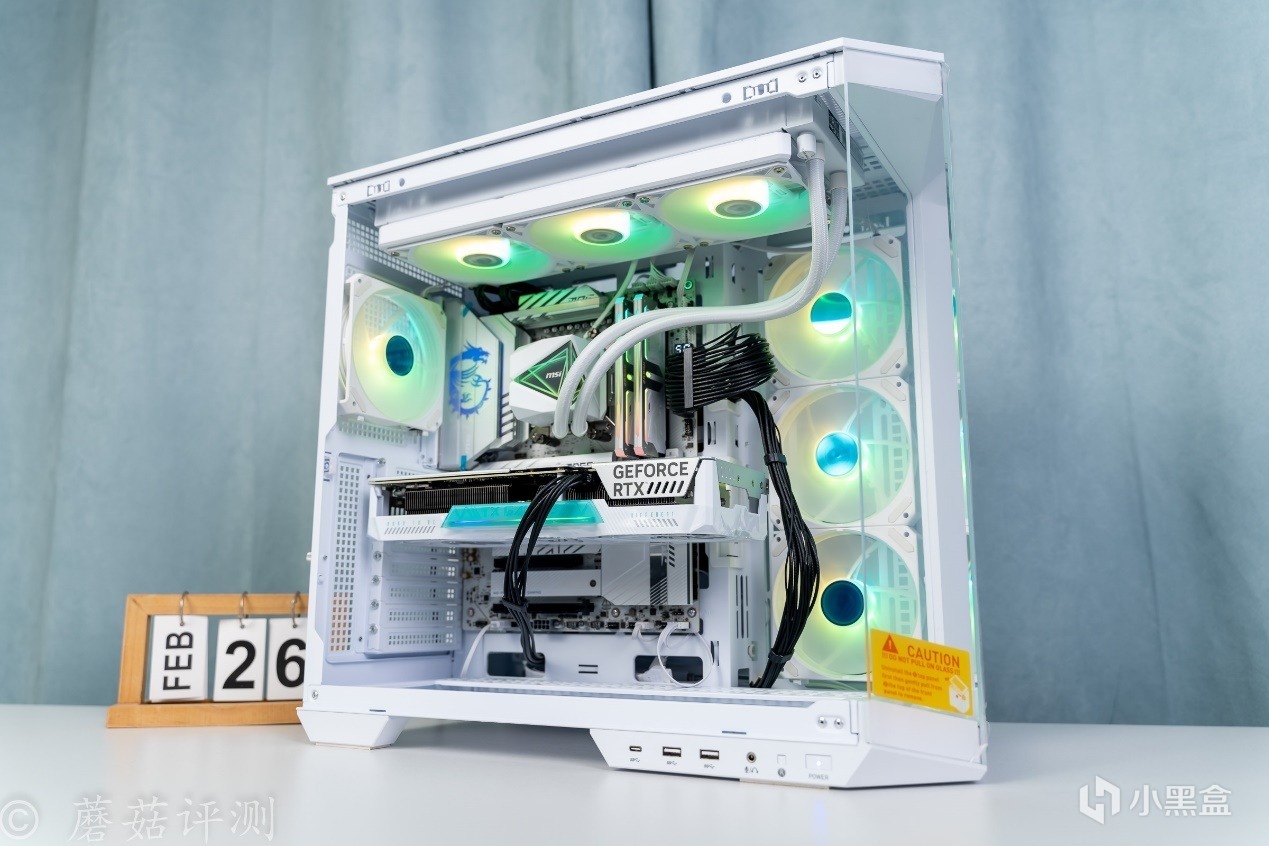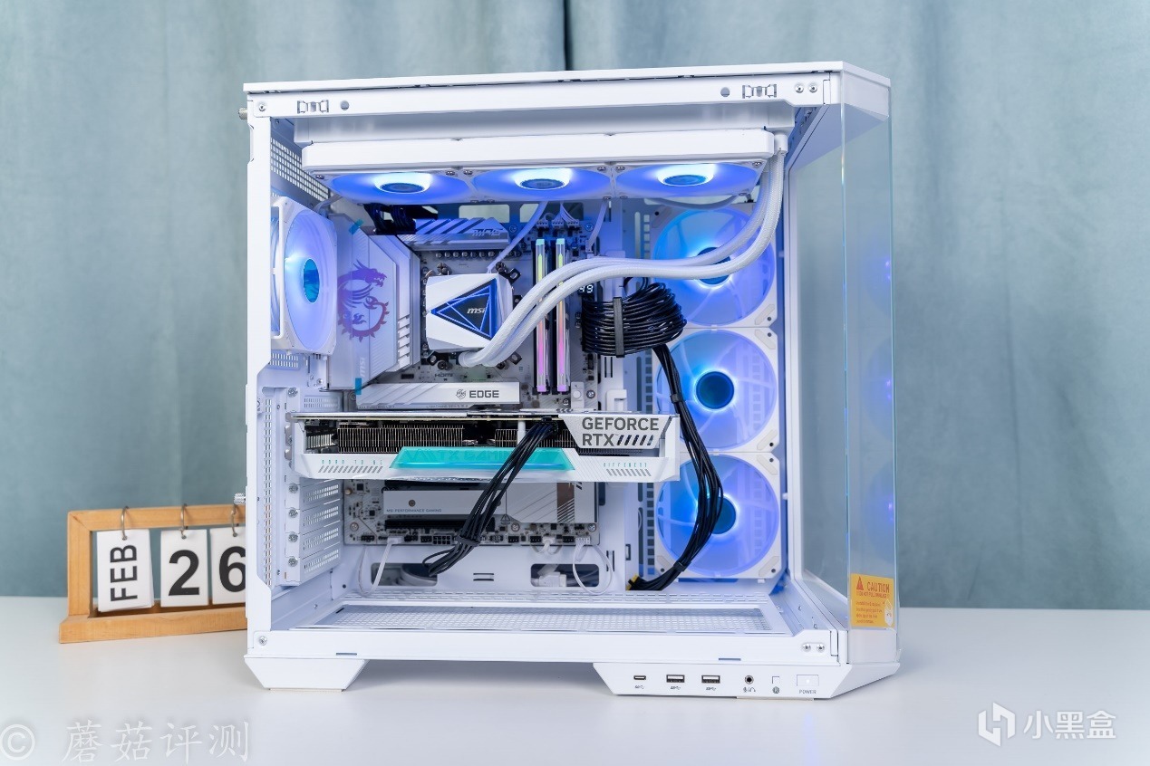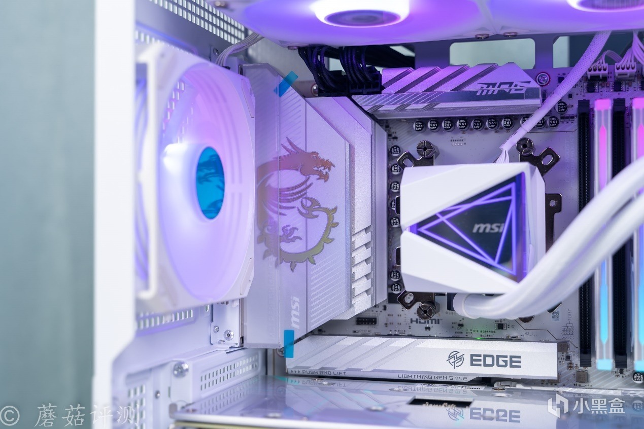 ▼機箱用的是微星的MAG PANO 100L PZ WHITE白刃PLUS,這款機箱採用海景房設計,側面和前面有超大面積的側透玻璃,白透設計,可以很好的展示機箱內部的硬件。