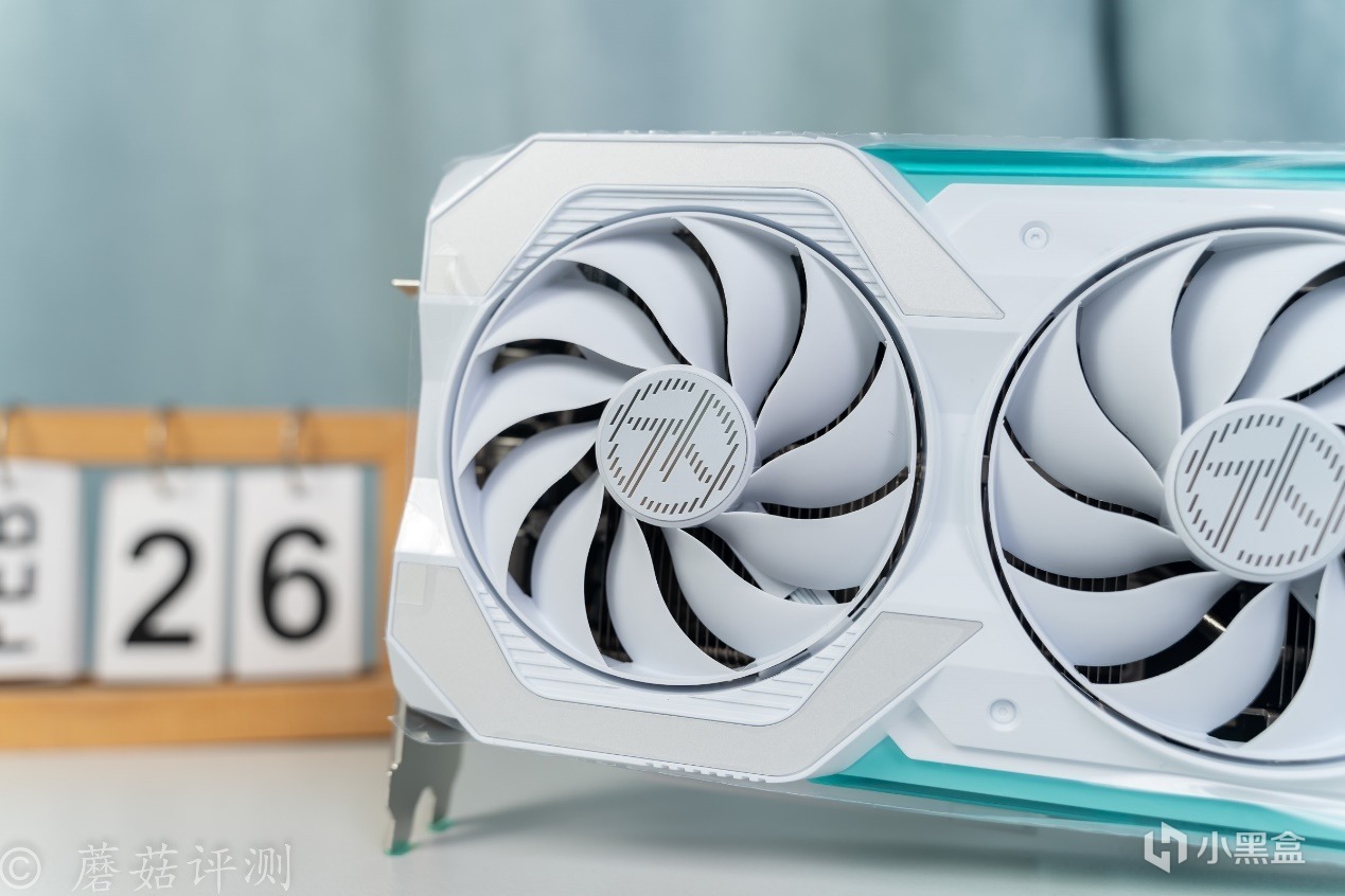 ▼顯卡的正面外觀非常漂亮,同樣採用天選系列經典的白蘭配色。
