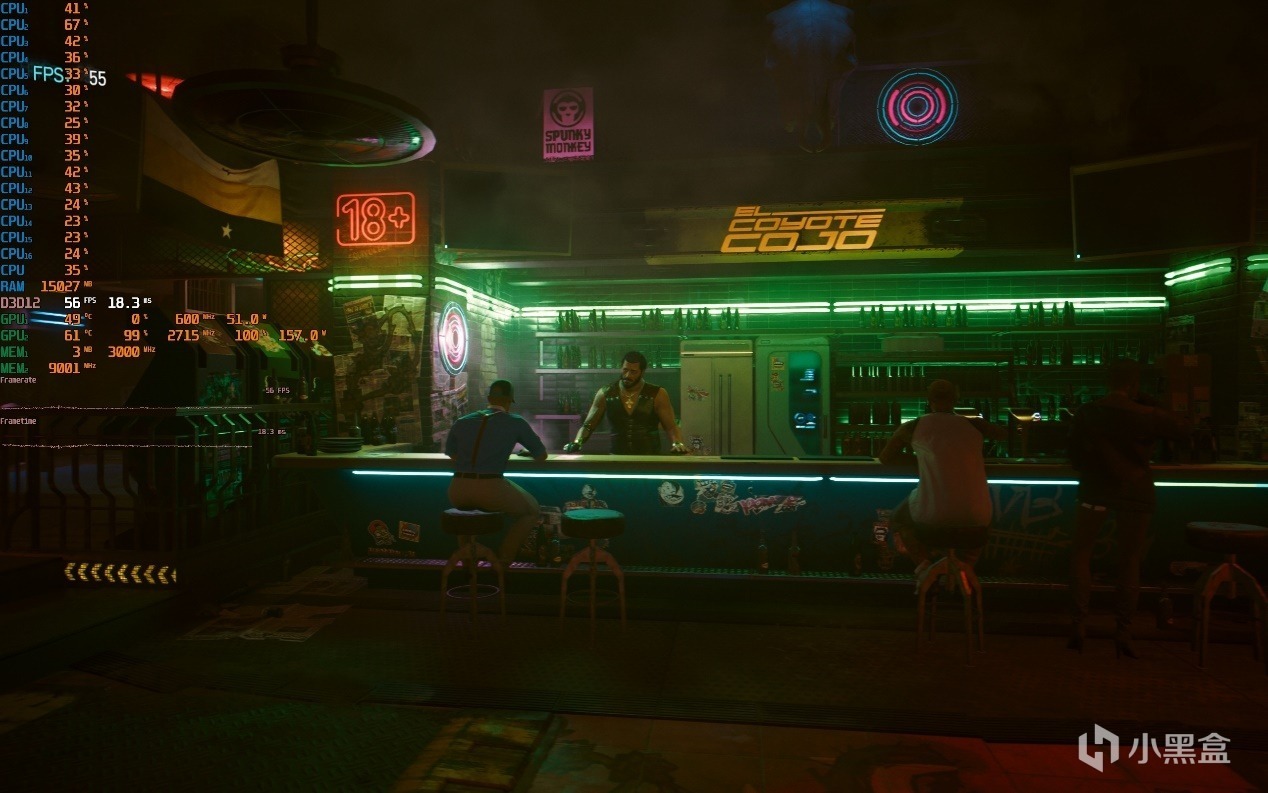 ▼酒吧吧檯遊戲畫面非常漂亮,光影效果很真實,遊戲幀數在56幀左右。