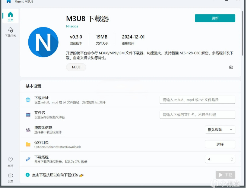 Fluent M3U8是一款跨平臺m3u8下載軟件,支持m3u8和mpd格式,採用多線程併發下載,提供智能下載管理。軟件高度可定製,擁有現代化界面設計。特色包括全面格式兼容、極速下載體驗、實時監控進度和便捷任務管理。