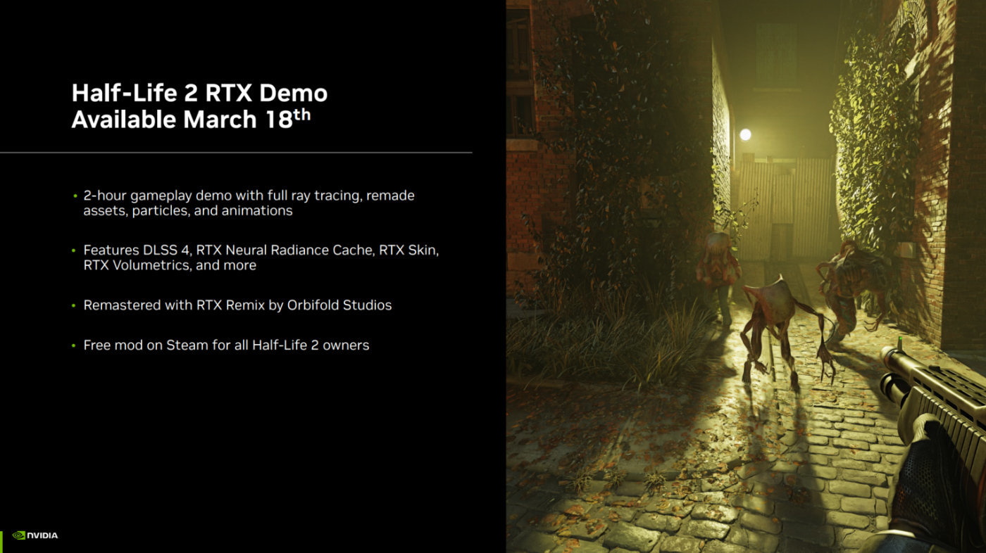 現在即將發佈的《半條命2/半衰期2》RTX Demo版由四個頂級遊戲MOD團隊組合成Orbifold Studios工作室合作完成,他們讓《半條命2/半衰期2》同時具備全景光線追蹤、DLSS 4多幀生成、NVIDIA Reflex、RTX Skin、RTX Volumetrics等多項技術,3月18日就可以免費玩到了。