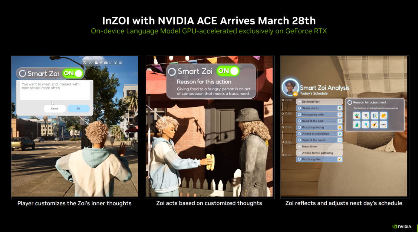 值得注意,集成了語音識別、文本語音轉換、神經網絡翻譯、感情分析等多項功能的NVIDIA ACE也開始實裝到遊戲中。第一款遊戲是來自藍洞工作室的《InZOI》。