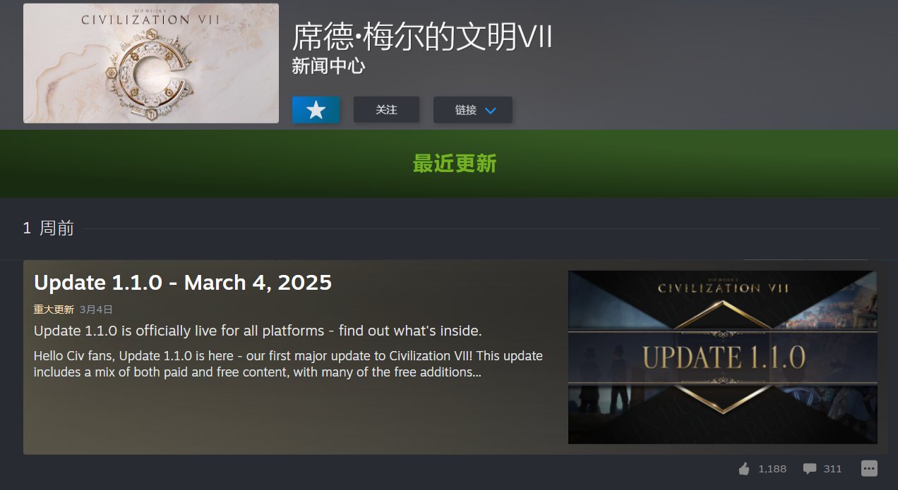 雖然《文明7》在上線之後沒有取得很好的口碑,這一點從它的Steam的評價可以看出來。不過,發售後及時推出的更新補丁讓遊戲體驗有了大幅提升,而且這款遊戲一直在持續更新優化中,上週還推出了一次重大更新。相信《文明7》會隨着發售後的持續打磨而不斷獲得遊戲體驗的提升和完善。